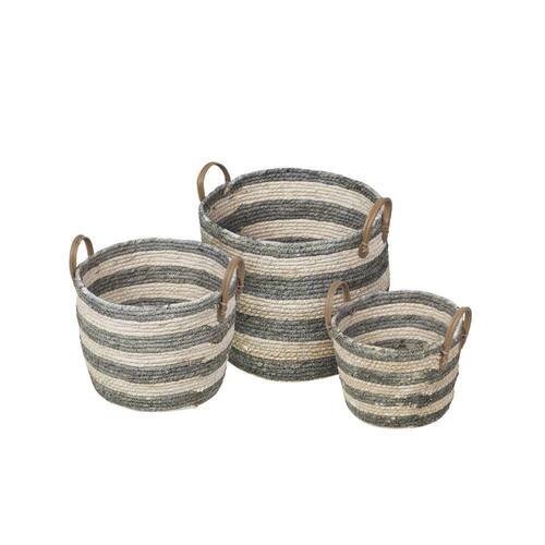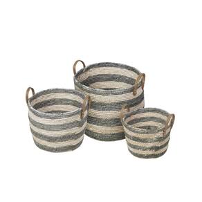 Kit cestos Boxbit Karon, conta com 3 cestos de tamanhos decrescentes de fibra natural (Seagrass).