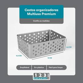 Kit 3 Cestos Multiuso Premium 123ORGANIZEI Cestos organizadores Multiuso, plástico, empilhável, design moderno, discretos, ótimos para organizar seu armário, cozinha, gavetas, banheiros e até estabelecimentos como bares, restaurantes, etc. Não deixe de organizar sua casa com um custo baixo e moderno que deixará seu ambiente agradável. - Material: Polipropileno; - Material Leve e Resistente; medidas 19x13,5x6,5Cm Marca: Não Informado Ean: 7894271737252