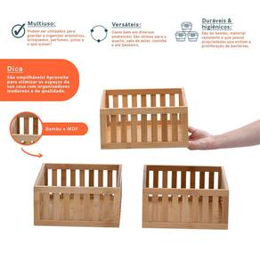"Conheça o Kit de 3 cestos ripados de bambu 27cm da OIKOS.Multiuso, versáteis, duráveis e higiênicos, são ótimos para guardar e organizar acessórios, brinquedos, perfumes, potes e o que precisar! Caem bem em diversos ambientes e são empilháveis, ajudando a otimizar espaços.São de bambu e MDF. Para limpar, basta utilizar um pano úmido e deixar secar em local arejado.Leve qualidade e modernidade para sua casa!O kit contém:3 cestos organizadores ripados de bambu 27cm"