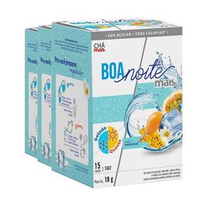 Kit 3 Chá Gelado CháMais Boa Noite Mais Maracujá 15 Sachês Ingredientes: Maracujá-mirim edulis Sims Camomila Matricaria recutita L. Capim-cidreira Cymbopogon citratus Stapf Estévia Stevia rebaudiana Bert Cúrcuma Curcuma longa L. Aroma idêntico ao natural de maracujá Características: Sem adição de açúcares Zero calorias Não contém glúten Modo de Preparo: Coloque 1 sachê de chá para cada xícara. Despeje água quente não fervente . Deixe em infusão até o sabor e o aroma ficarem a seu gosto. Marca: Não Informado