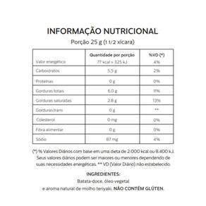 Batata-doce, óleo vegetal e aroma natural de molho teriyaki.