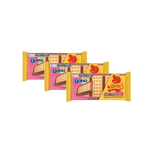 Ingredientes: açúcar, leite em pó, biscoito sabor baunilha, gordura vegetal, manteiga de cacau, massa de cacau, permeado de soro de leite em pó, gordura anidra de leite, emulsificantes lecitina de soja e poliglicerol polirricinoleato, aromatizantes e cora