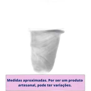 - coador reutilizável; - confeccionado em algodão 100%; - malha dupla; - haste e aro confeccionados em arame galvanizado; - comprimento do cabo: 8 centímetros padrão para todos os tamanhos - altura do coador: pp 12 cm , p 14 cm , m 16 cm , g 18 cm e gg 20 cm ; - largura do coador: pp 10 cm ; p 11,5 cm , m 14 cm , g 16 cm e gg 17 cm .