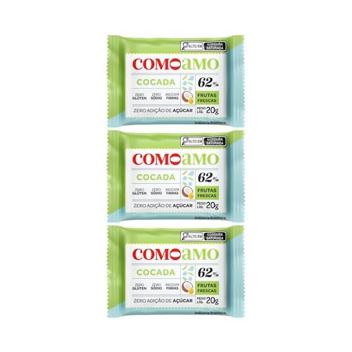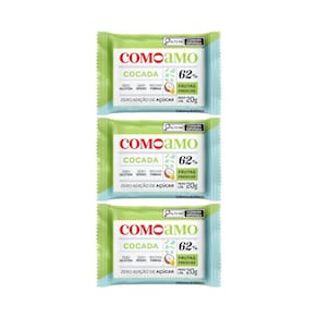 Kit 3 Cocada Zero 20g - ComoAmo - Grupo Rocha Saúde Sabor tradicional de cocada com zero adição de açúcar, perfeita para um lanche prático e indulgente A Cocada Zero 20g - ComoAmo traz o sabor autêntico do coco em uma versão moderna, sem adição de açúcar. Com textura macia, doçura equilibrada e ingredientes cuidadosamente selecionados, ela é ideal para quem busca praticidade sem abrir mão do sabor tradicional. Perfeita para consumir entre refeições, levar na bolsa ou ter sempre à mão no dia a dia. Uma opção leve, saborosa e que resgata a memória afetiva com mais equilíbrio. Diferenciais do Produto Sabor clássico de cocada Zero adição de açúcar Textura macia e agradável Embalagem prática de 20g Sem glúten e sem lactose Sugestões de Consumo Lanche rápido entre as refeições Para acompanhar cafés ou bebidas vegetais Como sobremesa prática no dia a dia Ideal para levar na bolsa, lancheira ou mochila Destaques do Produto Sabor marcante de coco natural Doce na medida certa sem açúcar adicionado Textura cremosa e consistente Pronto para consumo imediato Informações do Produto Produto: Cocada Zero Marca: ComoAmo Peso: 20g Não contém: Glúten e lactose Marca: Não Informado Ean: 7898966971099
