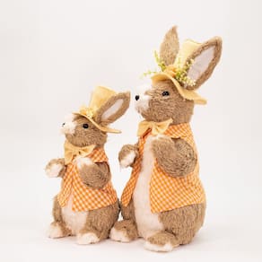 Contém: 2 Coelhos de Páscoa de 46cm e 1 Coelho de 35cm