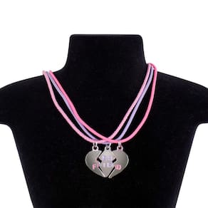 Kit 3 colares best friend amigas + pingente coração moda qualidade premium meninas ajustavel rosa