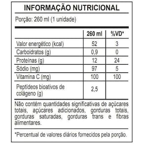 Kit 3 collagen drink abacaxi com hortelã e limão nutrify 260ml Benefícios: fortalecimento da pele, unhas e cabelos. Collagen drink nutrify é uma bebida refrescante, saborosa e nutritiva. Sua formulação inovadora oferece 2,5 g de peptídeos bioativos de colágeno verisol, dose comprovadamente eficaz para a manutenção da saúde da pele, além de alto teor de vitamina c, que auxilia na síntese de colágeno, na proteção dos danos causados pelos radicais livres e no funcionamento do sistema imune. Nutrify valoriza a origem de cada ingrediente, respeita a integridade de suas fontes naturais e dos envolvidos em sua produção. É assim que criamos produtos saudáveis e saborosos, que fazem bem para as pessoas e para o planeta. Acreditamos que nutrir corpo e mente de modo saudável nos torna capazes de alimentar o mundo com atitudes positivas. Ingredientes: água, colágeno hidrolisado, peptídeos bioativos de colágeno hidrolisado com peso molecular médio de 2kda verisol , ácido ascórbico, aromatizantes naturais, acidulante ácido cítrico, reguladores de acidez ácido málico d-, l- e citrato trissódico, edulcorante glicosídeos de esteviol de stevia rebaudiana bertoni e estabilizante goma gelana. Não contém glúten. Contém aromatizante. Este produto não é um . Não exceder a recomendação diária de consumo indicada na embalagem. Mantenha fora do alcance de crianças. Este produto é recomendado para adultos a partir de 19 anos. Apresentação: embalagem disponível: lata contendo suplemento líquido. Sabor abacaxi com hortelã e limão. Peso líquido: 260 ml produto classificado como: suplemento alimentar de proteínas líquido sabor de pineapple lemon mint. Marca: Não Informado Ean: 7908609544266