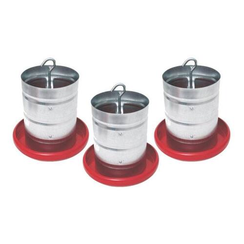 Comedouro Galvanizado 5kg Prato Plástico Para Aves 3 Unid. Conhecido como comedouro suspenso, por sitiantes em aviários, tubo galvanizado, base prato plástico vermelho. Características: Volume 5kg de ração. Possui regulagem na travessa superior em conjunto com a haste; O prato com 26 x 26 Cm é injetado com material 100% puro virgem PP H 103 com 0,02% UV contra raios ultravioletas; Altura Total 26 Cm cada; Fácil acesso das aves ao alimento; Peso: 630g cada. Conteúdo da embalagem: 3 Comedouros com capacidade para 5kg de ração. Marca: Não Informado