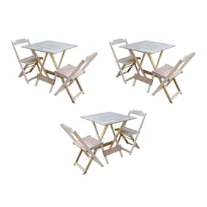 Kit 3 Conjuntos De Mesa Dobravel Com 2 Cadeiras De Madeira 70x70 Para Restaurante E Bar - Sem Pintura O produto é ideal para bares, restaurantes, estabelecimentos, áreas de lazer e também para sua casa. Feito em madeira maciça, tornando resistentes e duráveis. Seu design permite que seja encaixado em qualquer ambiente, trazendo um toque a mais para seu estabelecimento. Além de sua durabilidade, o que lhe trará conforto para servir seus clientes. Por ser dobrável torna-se mais fácil guardar, manusear e limpar o produto.