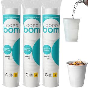 Kit 3 Copo Desc. Resistente 180ml Branco Água Copobom 300 Un Kit Com 3 Un. Copo Descartável Resistente 180ml Branco - 300 Unidades Copobom Ideal para Água e Bebidas Frias