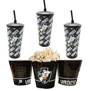 Kit 3 copos + balde de pipoca plástico preto com tampa canudo 500ml infantil criança time vasco O copo plástico com canudo - vasco é perfeito para os mais apaixonados demonstrarem todo o carinho pelo seu time do coração.