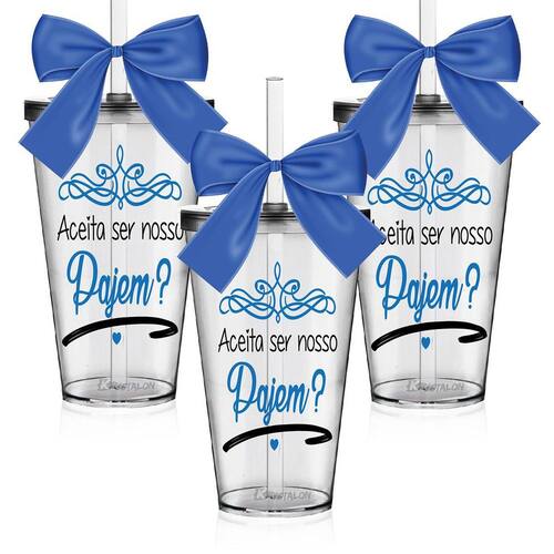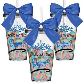 Os Copos Convite são uma forma linda e deliciosa de convidar ou agradecer os pequenos por participarem de uma data tão única Com capacidade de 550 ml, você tem a opção de encher os copos com todo tipo de doce e assim encantar os futuros Pajens O sim deles será GARANTIDO Personalize também do seu Jeito 3 Copos Convite com Tampa e Canudo Transparentes com 3 Laços em Cetim Azul. Capacidade: 550 ml Material Copo: Acrílico Poliestireno Resistente Laço: Cetim Cor do Copo: Transparente Tampa e Canudo: Transparente Personalização: Transfer Aplicação Direto no Produto Quantidade: 3 Peças Marca: Não Informado