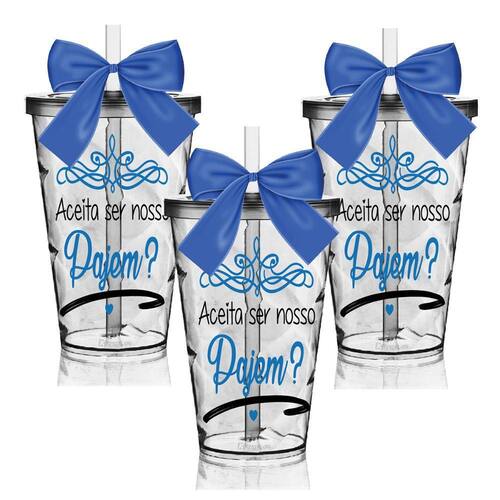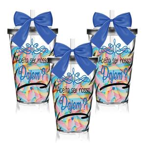 Kit 3 Copos Convite Twister Aceita Ser Para Pajem Acrílico Os Copos Convite são uma forma linda e deliciosa de convidar ou agradecer os pequenos por participarem de uma data tão única. Com capacidade de 700 ml, você tem a opção de encher os copos com todo tipo de doce e assim encantar os futuros Pajens O sim deles será GARANTIDO 3 Copos Convite com Tampa e Canudo Transparentes com 3 Laços em Cetim Azul. Capacidade: 700 ml Material Copo: Acrílico Poliestireno Resistente Laço: Cetim Cor do Copo: Transparente Tampa e Canudo: Transparente Personalização: Transfer Aplicação Direto no Produto Quantidade: 3 Peças
