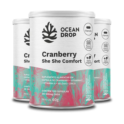 Kit 3 Cranberry She She Comfort Ocean Drop 120 Cápsulas Ingredientes: Cranberry em pó, ácido ascórbico, bisglicinato de zinco, selenometionina e acetato de DL-alfa-tocoferol. Cápsula: gelatina vegetal e água. Não contém glúten. Modo de Uso: Sugere-se a ingestão de 2 cápsulas ao dia ou conforme recomendação . Ingerir com líquido. Produto com duração de 1 mês. Contraindicações: Indicado para pessoas acima de 19 anos. Este produto não é recomendado para gestantes, lactantes e crianças. Este produto não é um . Informações Adicionais: Produto autorizado para comercialização em todo o território nacional conforme a RDC 27/2010 e a RDC 23/2000 da ANVISA. Marca: Não Informado Ean: 7908609533215