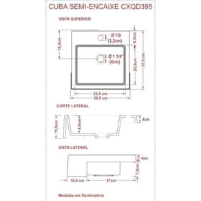 A cuba de semi-encaixe XQ395 tem seu design quadrado e um excelente escoamento de água, é fabricada em mármore sintético com acabamento em gel coat, material bem semelhante a louça, muito resistente e mais econômico.. Altura do Conjunto: 11.5 cm Ambiente: null Ambiente Principal: Banheiro Cor: Branco Informação Complementar: 3x Cuba de Semi Encaixe para Banheiro xq395 Quadrada Largura: 37 cm Altura: 11,5 cm Peso: 6,1 kg
