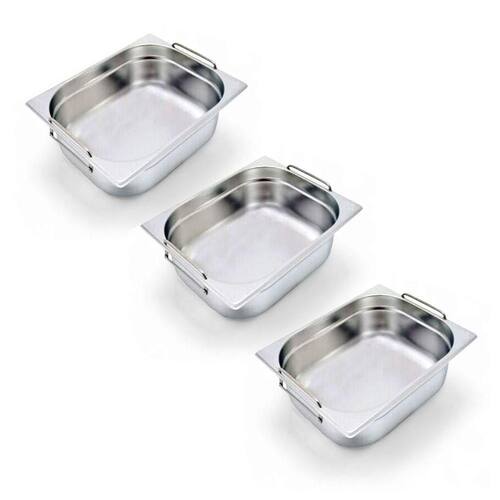 Kit 3 Cubas Gastronômica Inox Gn 1/2 150mm Com Alça Prateada