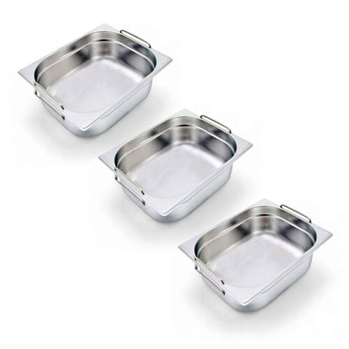 Kit 3 Cubas Gastronômica Inox GN 1/2 150mm com Alça Prateada
