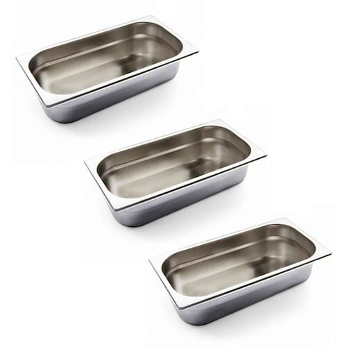 Kit 3 Cubas Gastronômica Inox Gn 1/3 65mm Sem Alça Prateada