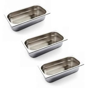 Kit 3 Cubas Gastronômica Inox GN 1/3 65mm sem Alça Prateada Cor PRATA INOX Kit 3 Cubas Gastronômicas Inox GN 1/3 65mm sem Alça Prateada - Chef Line 50522Versatilidade e organização em tamanho compacto. O Kit com 3 Cubas GN 1/3 de 65mm da Chef Line é a solução prática e eficiente para quem precisa servir ou armazenar pequenas porções com agilidade e segurança. Ideal para em buffets, cozinhas industriais, refeitórios e serviços de catering.Fabricadas em aço inoxidável por estampagem monobloco, sem soldas, essas cubas oferecem máxima higiene e fácil higienização. Os cantos arredondados evitam acúmulo de resíduos, e o acabamento liso e moderno proporciona um visual profissional. A ausência de alça permite encaixe perfeito em caixas térmicas, bancadas ou carrinhos gastronômicos.Principais Características:- Kit com 3 unidades- Modelo: GN 1/3 com profundidade de 65mm- Material: Aço inoxidável de alta qualidade- Acabamento: Estampagem monobloco, sem soldas- Dimensões: 32 cm comprimento x 17 cm largura x 6 cm altura - Peso aproximado de cada unidade: 400 Gramas- Sem alça - ideal para uso fixo ou modular- Compatível com caixas térmicas e carrinhos gastronômicos- Fácil higienização graças aos cantos arredondados- Ideal para uso em buffets, refeitórios, restaurantes e cozinhas industriais- Suporta variações de temperatura, sendo adequada para alimentos quentes ou friosPor que escolher o Kit GN 1/3 Chef Line com tamanho intermediário e estrutura resistente, essas cubas oferecem praticidade no preparo, transporte e apresentação de alimentos. São ideais para otimizar o espaço em ambientes profissionais, mantendo padrão de higiene e desempenho elevado.Garanta praticidade, durabilidade e eficiência com o padrão profissional da Chef Line.Tags: kit cuba gastronômica inox gn 1/3, cuba gn 1/3 65mm, cuba inox sem alça gn 1/3, cuba chef line inox gn, cuba inox pequena rechaud, cuba inox buffet, cuba inox cozinha industrial, cuba inox monobloco, cuba inox sem solda, cuba inox alimentos quentes, cuba inox alimentos frios, cuba inox 32x17, cuba inox compacta gn 1/3, cuba inox para carrinho gastronômico, cuba inox uso intenso, cuba inox sem alça prateada, cuba inox cantos arredondados, cuba inox para caixa térmica, cuba inox prática e resistente, cuba gn inox
