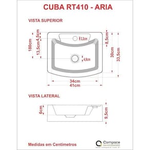 A cuba RT41 Aria tem seu design diferenciado e um excelente escoamento de água. Fabricada em mármore sintético com acabamento em Hard Lacca PU, material bem semelhante a louça, muito resistente e mais econômico! Altura do Conjunto: 9.5 cm Ambiente: null Ambiente Principal: Banheiro Cor: Cinza Informação Complementar: 3x Cuba para Banheiro RT41W Retangular Aria Cinza Largura: 33,5 cm Altura: 9,5 cm Peso: 4,3 kg