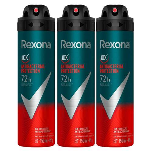 Kit 3 Desodorante Rexona Antibacterial Protection Men Aerosol Antitranspirante 72h 150ml