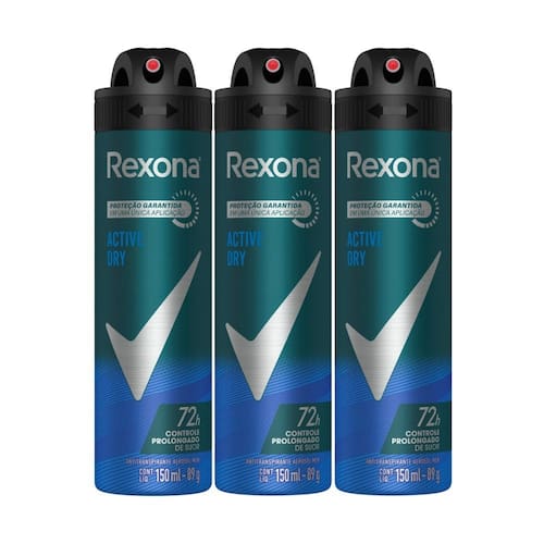 Kit 3 Desodorante Rexona Men Active Dry Aerosol Antitranspirante 72h 150ml