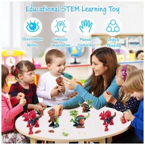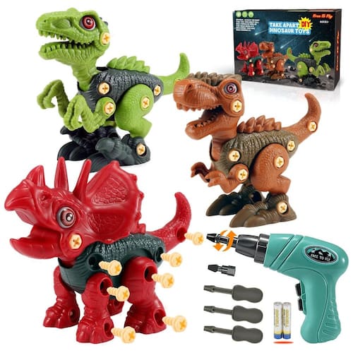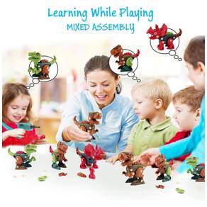 Este kit de construção de dinossauros é perfeito para crianças de 3 a 8 anos. O conjunto inclui três tipos diferentes de dinossauros Triceratops vermelho, Tiranossauro Rex marrom e Velociraptor verde cada um em seu próprio pacote para desmontar. As crianças podem usar sua imaginação e criatividade para combinar peças aleatoriamente e montar um dinossauro especial. Os brinquedos STEM educacionais são seguros e engraçados, feitos de material ABS durável e não tóxico, com bordas lisas para evitar machucar as mãos dos seus filhos durante a montagem. Além disso, o conjunto vem com uma furadeira elétrica de baixa velocidade com 2 tipos de brocas, 3 chaves de fenda manuais e instruções de montagem claras e fáceis de entender. As crianças podem mover as articulações da cabeça, mãos e pés dos dinossauros para balançar o corpo e fazer diferentes poses com flexibilidade. Este conjunto de brinquedos educativos gratuitos para voar é um presente perfeito para meninos e meninas de 3 a 8 anos, especialmente na Páscoa.