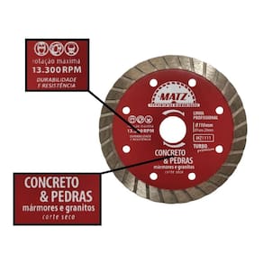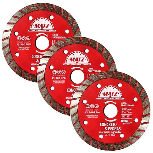 Kit 3 Disco Corte Diamantado Turbo Concreto 110X20Mm Matz