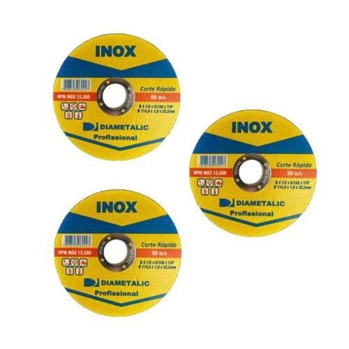 Informações técnicas: Tipo de corte: A seco Diâmetro externo: 115mm 4.1/4'' Diâmetro do furo: 22mm Rotação máxima por minuto: 15000 Para corte de Aço Inox Proporciona qualidade e produtividade na operação Produto de altíssima qualidade com alta performance