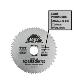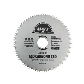 Informações técnicas: Perfil do corte: Serra de aço carbono Tipo de corte: A seco Dimensões: - Diâmetro externo: 110mm 4.3/8'' - Diâmetro do furo: 20mm - Espessura: 1mm Quantidade de dentes: 72 Rotação máxima por minuto RPM : 10.000 - 60m/s Para corte de: Madeira, aglomerado, compensado e formica Proporciona qualidade e produtividade na operação Produto de altíssima qualidade com alta performance