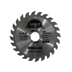 Disco de corte serra widea com 24 dentes, ideal para cortes precisos em madeira em geral. Projetado para corte a seco e refrigerado, oferece alta durabilidade e desempenho superior. Seus dentes de carboneto de tungstênio garantem cortes rápidos e limpos, reduzindo o desgaste e aumentando a vida útil do disco. Perfeito para marcenaria e projetos que exigem acabamento e eficiência. Informações técnicas: Perfil do corte: Serra Tipo de corte: A seco e refrigerado Dimensões: - Diâmetro externo: 110mm 4.3/8'' - Diâmetro do furo: 20mm - Espessura: 2mm Quantidade de dentes: 24 Rotação máxima por minuto RPM : 13.000 - 80m/s Para corte de: Madeira em geral Proporciona qualidade e produtividade na operação Produto de altíssima qualidade com alta performance KIT COM 3 UNIDADES Marca: Não Informado