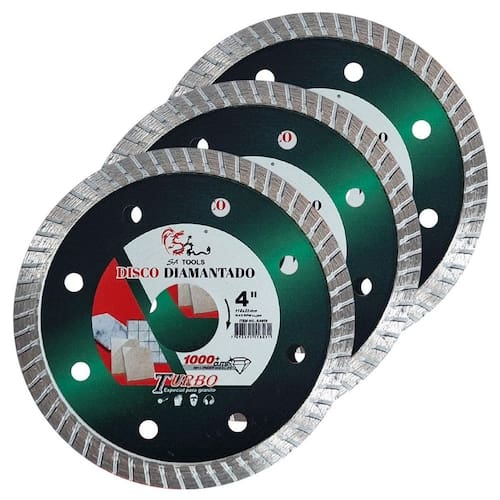 - marca: sa tools - modelo: sa859-3x - kit exclusivo com 3 discos - diâmetro: 110m 4 polegadas - espessura:1mm - furo de 22mm - acompanha anel redutor de furo para 20mm - rotação máxima 15. 000 rpm - disco diamantado turbo extra fino de alto rendimento - uso em serras mármore: makita, bosch, dewalt, e outras marcas. - pode ser utilizado seco ou com água - para uso em mármore, granito, cerâmica, azulejo, piso e concreto. - também indicado para porcelanatos, vidros, nanoglass, marmoglass, espelhos e mármores importados. - não corta vidros temperados