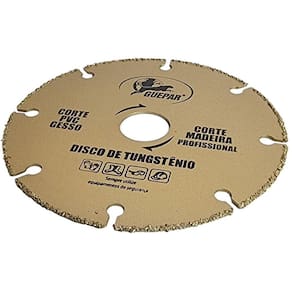 - Marca: Guepar - Referência: 861-45886-3X - Kit exclusivo com 2 discos de corte - Diâmetro: 110mm 4 1/2 - Furo: 20mm - Acompanha anel redutor para 16mm - Oferece maior segurança ao profissional no corte de madeira - Possui grãos de tungstênio soldados a laser, que garante corte rápido, suave e com alto nível de segurança, evitando contragolpes. - Indicado para corte de madeira macias, madeiras de construção com resíduos de concreto e até mesmo em madeiras com pregos, e também para o corte de PVC e gesso. - Disco de Tungstênio para corte em madeira - Para cortar madeira dura, macia, placas de compensado, aglomerado, materiais de fibra como MDF, MDP e piso laminado. - Único modelo de disco de corte seguro para cortar madeira com serra mármore Makita - Uso em serras mármores de qualquer marca: Makita, Bosch, Dewalt, etc. - Mais Durabilidade e melhor acabamento Disco de tungstênio para corte de madeira - Rotação máxima 13.800 rpm 80 m/s - Não deforma nem trava no material, permitindo excelente refrigeração, segurança e durabilidade - Peso bruto: 90 gramas - Garantia: 90 dias Ean: 7734625901840