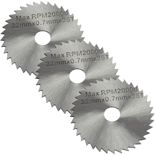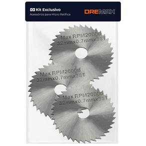 Kit 3 Discos Lâmina de Serra 32mm 36 Dentes para Micro Retíficas Dremax - Marca: Dremax - jogo exclusivo com 3 laminas de 32mm - Material: Aço Rápido HSS - Diâmetro: 32mm - Espessura: 0,7mm - Número de dentes: 36 - Diâmetro do furo: 1/4 6,35mm - Ideal para o corte de materiais duros como madeira, plásticos, laminados, alumínio, etc - Indicado para uso com micro retíficas de qualquer marca Dremel, Charbs, etc - Adequado para uso em Carpintaria e artesanato - Para sua segurança, aperte bem o parafuso da haste - Velocidade máxima de operação: 20.000 rpm - : 90 dias A DREMAX é a primeira e única marca brasileira dedicada exclusivamente às micro retíficas, acessórios e acoplamentos para esta indispensável ferramenta. Seja para trabalhos de precisão, artesanato, modelagem ou reparos, a DREMAX tem o produto certo para você. Marca: Não Informado