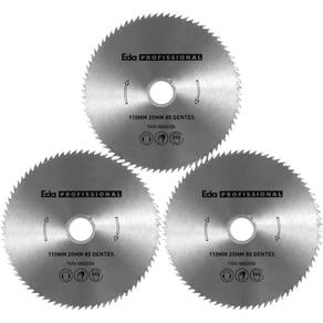 O Kit 3 Disco Lâmina De Serra 110Mm Circular Madeira 80 Dentes é perfeito para você que busca qualidade e precisão nos cortes de madeira. Composto por 3 lâminas de serra de 110mm de diâmetro e 80 dentes, este kit é ideal para cortar madeiras macias como conglomerado, forros, MDF, compensados e cartonados. Fabricadas em aço carbono, as lâminas possuem espessura de 1,6mm e furo de 20mm, garantindo um encaixe perfeito na sua serra circular. Com rotações máximas de até 17.500 rpm, elas proporcionam um corte rápido e preciso, garantindo um acabamento impecável em suas peças de madeira. Além disso, as lâminas do Kit 3 Disco Lâmina De Serra 110Mm Circular Madeira 80 Dentes são indicadas para cortar madeiras finas que necessitam de um melhor acabamento e precisão. Com a de 90 dias da marca Eda Profissional, você pode confiar na qualidade e durabilidade dessas lâminas. Adquira agora mesmo o Kit 3 Disco Lâmina De Serra 110Mm Circular Madeira 80 Dentes e tenha em mãos as melhores lâminas de serra para realizar seus projetos com excelência. Não perca essa oportunidade! Marca: Não Informado Ean: 7734625999977