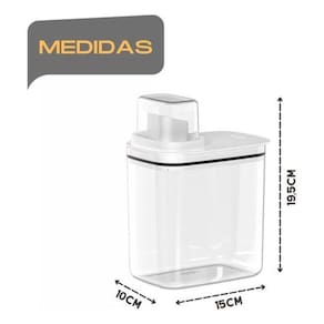 - Capacidade de 1,5L, ideal para diferentes tipos de produtos de limpeza. - Tampa medidora com gravação de gradação em mL. - Aba ergonômica na tampa para facilitar a abertura. - Anel de vedação que mantém o recipiente fechado para maior segurança no manuseio. - Tampa com sistema de caimento interno para retornar o líquido que sobra.