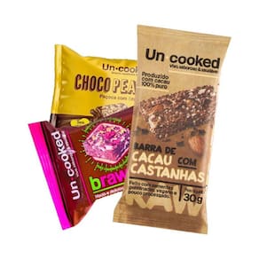 Kit 3 Doces de Cacau Uncooked: Castanha, Brawnie, Chocopeanuts