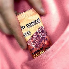 1 unidade: Barra de Cacau com Castanhas Sem Glúten Vegano Uncooked 30g