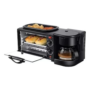 Com uma cafeteira integrada, você pode preparar seu café fresco enquanto assa ou grelha seus alimentos favoritos no forno, ou na frigideira. A frigideira removível permite cozinhar ovos, bacon, panquecas e muito mais, enquanto o forno garante fatias de pão crocantes e douradas em questão de minutos.