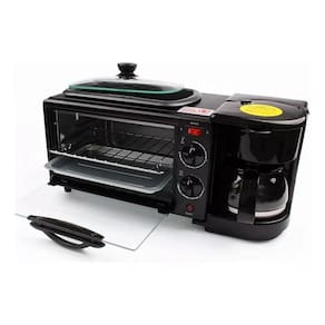 Mini forno elétrico 3 em 1 com cafeteira, frigideira e forno. Design compacto e eficiente, ideal para pequenos espaços. Cafeteira integrada para café fresco a qualquer momento. Frigideira removível para cozinhar uma variedade de alimentos. Forno para fatias de pão crocantes e douradas. Fácil de usar e limpar.Forno autolimpante