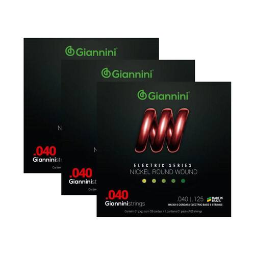Kit 3 Encordoamento Baixo Giannini Electric GEEBRL5 Nickel 5c 0.040"