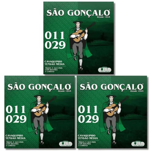 Kit 3 Encordoamento Cavaco Níquel Com bolinha São Gonçalo 0.011 - 0.029 Descrição: As cordas São Gonçalo para cavaquinho possuem um encordoamento em aço inoxidável com bolinha e são revestidas com níquel. Elas possuem uma tensão média, além de possuir uma afinação precisa e durável, o que mantém o sustain por muito mais tempo. As cordas de cavaquinho São Gonçalo são feitas apenas para esse instrumento. Neste caso, é preciso contar com um encordoamento muito leve, para obter um timbre mais aveludado. A São Gonçalo teve a sua história iniciada em 1918, em um modesto edifício na Praça Marechal Deodoro da Fonseca em e, desde então, tem oferecido ao mundo produtos da mais alta qualidade e que garantem o melhor timbre para o seu cavaquinho. Sobre nossa loja: Somos a E Musical loja de instrumentos e acessórios musicais. Contamos com mais de 3 mil produtos novos e seminovos revisados e uma equipe de vendas especializada que trabalha desde 2009 no mercado da música. Estamos sempre à disposição para atender suas necessidades e exigências como músico Emusicalshop Jacareí SP