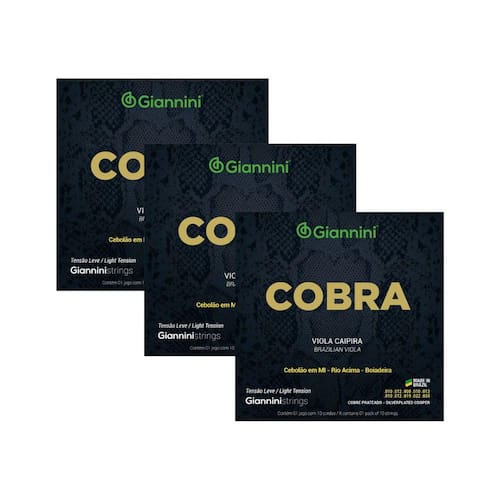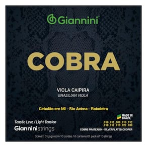 O encordoamento Giannini Cobra GESVL é ideal para afinação Cebolão em Mi, Rio Acima e Boiadeira, tensão leve.