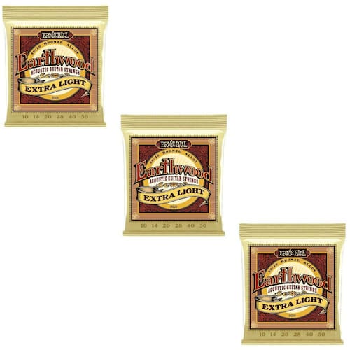 Kit 3 Encordoamentos Ernie Ball Earthwood Violão Aço 010-050 Extra Leve 80/20 Bronze