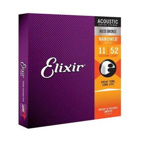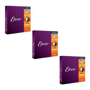 Kit 3 Encordoamentos Elixir Violão Aço 011-052 Custom Light Nanoweb 11027 Made in USA Bronze 80/20