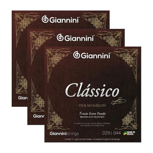 Kit 3 Encordoamento Violão Nylon Clássico Bronze 65/35 GENWXPA Extra Pesada