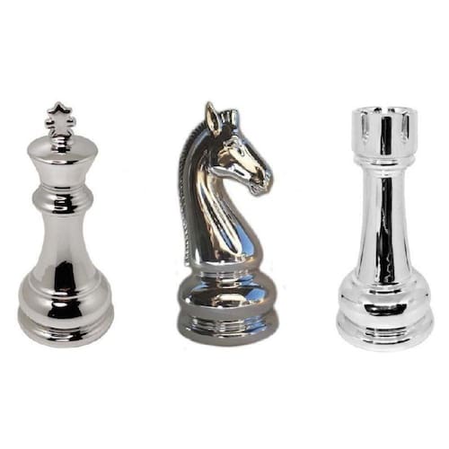 Kit 3 Enfeite Decorativo Xadrez Em Porcelana Prata