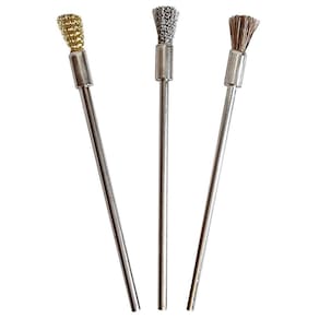 Kit 3 Escovas Rotativas Extra Longa 100mm com Haste 3mm para Micro Retíficas Dremax - Marca: Dremax - 1 Escova em Aço Inox - 1 Escova em Latão - 1 Escova em Crina de Cavalo - Diâmetro da haste: 3mm - Comprimento total: 100mm - Diâmetro da escova: 8mm - Indicada para limpezas e acabamentos em superfícies - Uso em micro retíficas de qualquer marca com pinça de 3mm - Indicada para limpeza sem risco em metais macios como ouro, bronze, cobre e latão - Seu formato o torna adequado para a limpeza de superfícies planas, além de ser perfeito para entrar em lugares difíceis de alcançar. - Pode ser usada também em trabalhos com vidro, pedra, madeira, plásticos e materiais similares - Garantia: 90 dias contra defeitos de fabricação A DREMAX é a primeira e única marca brasileira dedicada exclusivamente às micro retíficas, acessórios e acoplamentos para esta indispensável ferramenta. Seja para trabalhos de precisão, artesanato, modelagem ou reparos, a DREMAX tem o produto certo para você. Marca: Dremax
