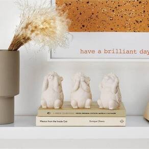 Produzido em cimento, este kit vem com três peças com design diferenciado em forma de porco espinho. Um tapando os olhos, outro os ouvidos e o terceiro a boca. Perfeito para decorar seu escritório, sala, cozinha, área gourmet e muito mais com muita energia positiva!
