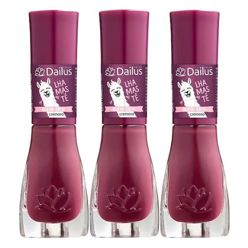 ESMALTE DAILUS LHAMASTÊ COR HAJA PACIÊNCIA Cremoso. Inspira, expira e não pira… Tem situações e que testam as lhamas “estouradinhas” e que cospem, mas HAJA PACIÊNCIA! Apenas uma cor forte como este vinho revisitado e com fundo rosado para representar esse estado de espírito. Quem concorda respira!